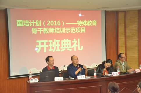 10月25日上午,“国培计划”(2016)——示范性集中培训项目特殊教育骨干教师培训开班典礼在重庆师范大学沙坪坝校区培训楼5301报告厅隆重举行。重庆师范大学教师培训学院副院长张红,重庆师范大学教育科学学院院长张希希、特殊教育系系主任向友余,以及来自全国20多个省市的101名特教战线的教师参加了开班典礼。开班典礼由教育科学学院培训部主任汪崇渝主持。